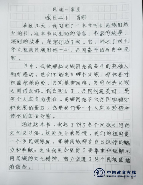 城区二小与城步西岩镇中心小学的小画家们将自己对民族文化的理解注入了画笔,用绚丽的色彩描绘出了一幅幅充满民族特色的画作。有的以少数民族的日常生活为题材,展现了他们独特的文化习俗;有的则以民族团结为主题,用生动的形象表达了各民族人民之间的深厚情谊和共同追求;小小作家们则在真挚的文字中倾注了自己对于民族团结的理解,书里书外的世界,都让他们无比向往。
