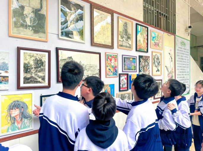 课间时分,展区前总是围满了学生。他们或三五成群,低声品评;或独自凝神,细细揣摩。孩子们眼中闪烁的光芒,比画作本身更动人。